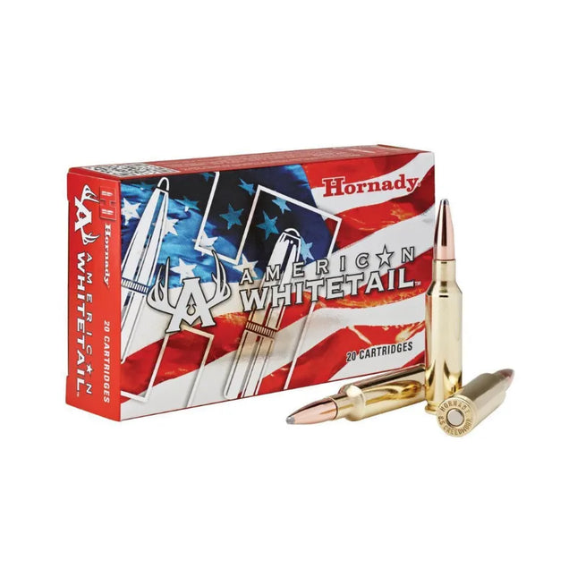 Opening day of deer season comes only once a year. Make sure you're ready when the big one steps out and load-up with Hornady® American Whitetail® ammunition. Loaded with our legendary Hornady® InterLock® bullets in weights that have been deer hunting favorites for decades, American Whitetail® ammunition combines generations of ballistics know-how with modern components and the technology you need to take the buck of a lifetime! Proudly made in the USA! INTERLOCK® BULLETS InterLock® bullets feature exposed lead tips for controlled expansion and hard-hitting terminal performance. Bullets used in American Whitetail® ammunition feature our pioneering secant ogive design and exclusive InterLock® ring — a raised ring inside the jacket that is embedded in the bullet's core that keeps the core and jacket locked together during expansion to retain mass and energy. POWDERS Loaded to conventional velocities, powder is matched to each load for optimum pressure and consistency, ensuring each load is compatible with semi-autos as well. CASE AND PRIMER Like all Hornady® ammunition, our American Whitetail® rounds use the highest quality cases and primers available. Consistent components translate to consistent shooting in the field.
