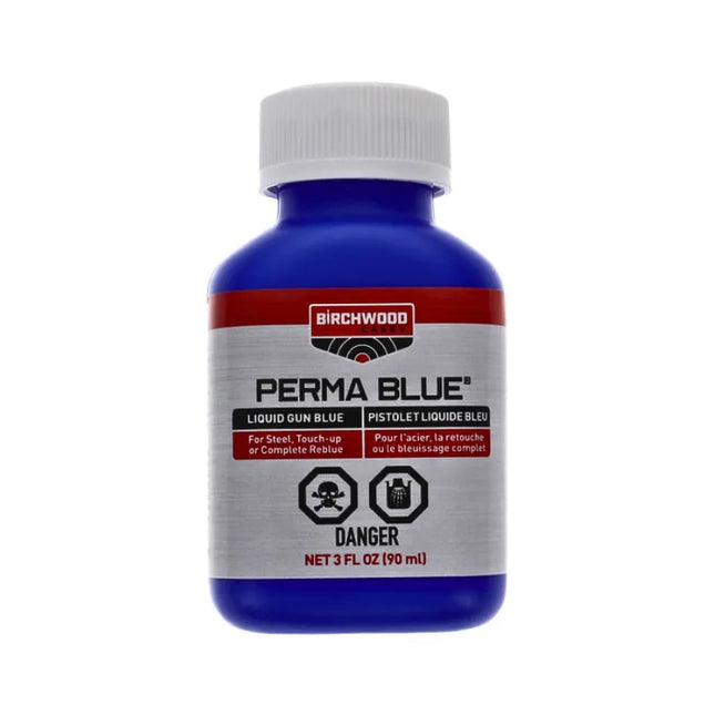 The Birchwood Casey Perma Blue® Liquid Gun Blue is a product designed for touching up scratches and worn spots or even completely reblueing most guns1. It provides a non-streaky, even blue-black finish to steel (except stainless).