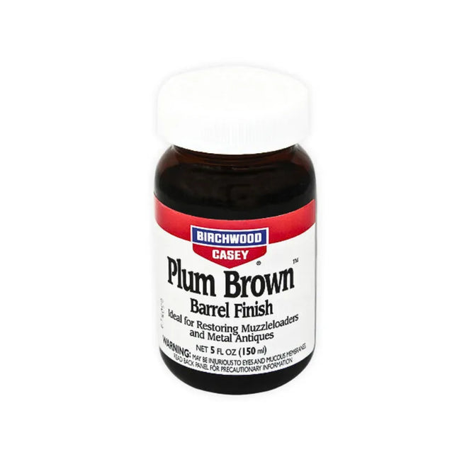 PRODUCES A RICH, AUTHENTIC, OLD-STYLE BROWN FINISH FOR ORIGINAL OR REPLICA FIREARMS. PLUM BROWN™ BARREL FINISH IS IDEAL FOR RESTORING ANTIQUE GUNS, MUZZLELOADERS AND OTHER METAL ANTIQUES. A DURABLE, PROTECTIVE AND ATTRACTIVE FINISH THAT’S SIMPLE TO APPLY. JUST HEAT METAL WITH PROPANE TORCH OR OTHER CLEAN, CONVENIENT METHOD AND APPLY BROWNING SOLUTION WITH SPONGE. IMMEDIATE RESULTS – NO WAITING FOR OLD-FASHIONED SLOW RUST PROCESS WHICH CAN TAKE WEEKS TO FINISH.14130 - PLUM BROWN™ BARREL FINISH, 5 FL. OZ. BOTTLE