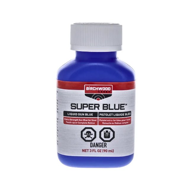 Birchwood Casey Super Blue® Liquid Gun Blue is a double-strength bluing solution designed for blueing highly polished steel parts and hardened steels containing nickel and chrome alloys (except stainless). It’s the blackest blue available for firearms enthusiasts and gunsmiths. Here are some key details about it: