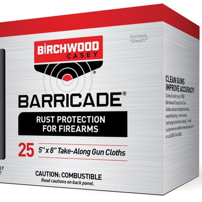 Convenient Barricade® gun cloths leave a lasting, protective, anti-rust film on firearms and other metal equipment