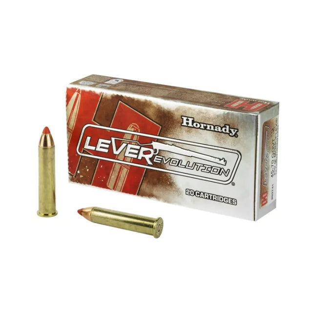 🌟 Introducing Hornady .45-70 Govt 325gr FTX - Unleash Uncompromising Power and Performance! 🌟Experience the ultimate combination of power, accuracy, and reliability with Hornady .45-70 Govt 325gr FTX ammunition. Engineered for the demands of serious big-game hunters, these cartridges deliver devastating terminal performance and unmatched stopping power.💥 Devastating Terminal Performance: The Hornady .45-70 Govt 325gr FTX cartridges feature the innovative FTX (Flex Tip eXpanding) bullet. Designed for controlled expansion and deep penetration, these cartridges deliver devastating terminal performance on a wide range of game. Witness the remarkable stopping power and game-dropping performance of the FTX.🎯 Unparalleled Accuracy: Hornady is synonymous with precision, and the .45-70 Govt 325gr FTX lives up to that reputation. Each cartridge is meticulously crafted with high-quality components, ensuring consistent performance and exceptional accuracy. Take aim with confidence, knowing that your shots will hit their mark with unwavering precision.🔍 Superior Ballistics: The .45-70 Govt 325gr FTX cartridges are optimized for superior ballistics, providing a flat trajectory and excellent downrange energy. These cartridges offer reliable performance and impressive stopping power, making them ideal for hunting large and dangerous game.💪 FTX Technology: The FTX bullet features a patented Flex Tip that initiates rapid expansion upon impact, while the InterLock ring keeps the core and jacket locked together for reliable weight retention and deep penetration. This lethal combination ensures devastating results on game animals.📦 Convenient Packaging: Hornady understands the importance of convenience, which is why these cartridges come in a practical box of 20 rounds. The compact size allows for easy storage and transport, so you can bring the power of Hornady with you on your hunting expeditions.🌟 Elevate Your Hunting Experience: Elevate your hunting performance with Hornady .45-70 Govt 325gr FTX ammunition. Experience the power, precision, and reliability that these high-quality cartridges offer. Choose Hornady for the ammunition that exceeds expectations.🔒 Load your rifle with Hornady .45-70 Govt 325gr FTX and unleash the unrivaled power and performance you need for successful big-game hunting. Visit your local firearms dealer today and stock up on these exceptional cartridges. Trust Hornady for the ammunition that sets the standard for performance and reliability in the field.