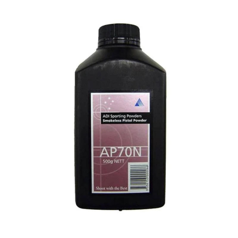 The ADI AP70N is a versatile medium-burning rate pistol and shotgun powder, widely used for target shooting, IPSC, and general reloading across a broad range of calibers. It delivers clean combustion, consistent metering, and reliable ignition, making it a favorite among Australian reloaders.