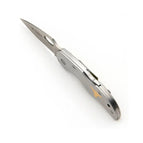 Handle: The overall length of the knife is 6 inches, with a closed length of 3.5 inches. The handle is made of stainless steel, providing durability and a comfortable grip.