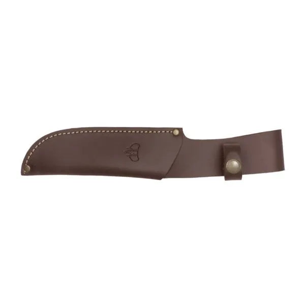 CUDEMAN - CLIP POINT 16CM SATIN FINISH BLADE SATIN OLIVE WOOD HANDLE / LEATHER SHEATH (121-L)