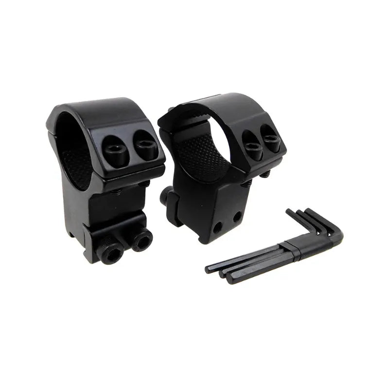 The Hawke Extension Rings 9-11mm High 1" EXT Double Screw are designed for mounting scopes on rifles with 9-11mm dovetail rails. These rings feature a high-profile design to accommodate scopes with larger objective lenses. One of the rings includes a 1-inch extension, allowing for better eye relief and positioning.