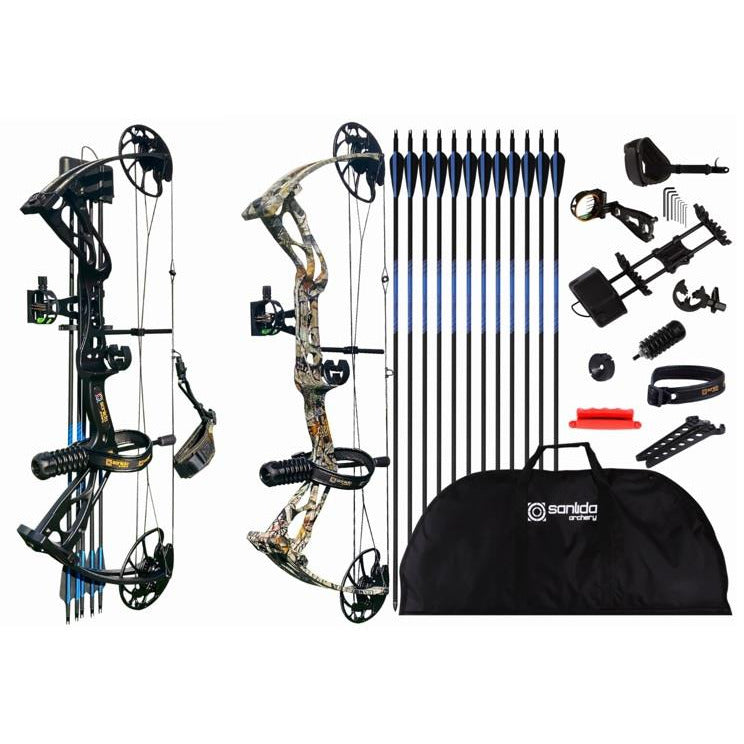 - Ready-to-shoot compound bow package includes - A 5-pin sight, arrow rest, wrist sling, and stabilizer