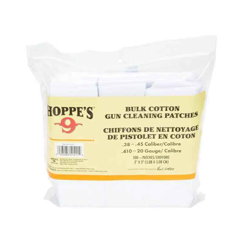 The Hoppe’s .44/.45 Caliber Cleaning Patches are precision-cut, ultra-absorbent patches designed for effective bore cleaning in large-caliber handguns and rifles. Made from high-quality synthetic or cotton fabric, they’re ideal for use with Hoppe’s No. 9 solvent, lubricating oil, or other cleaning agents.