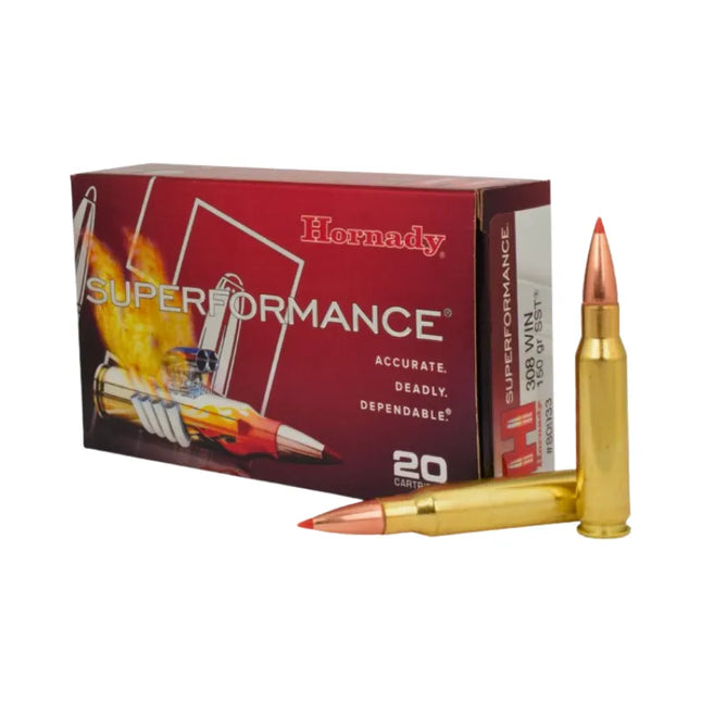 The HORNADY 308 WIN 150GR SST Superformance - 20PK is a high-performance hunting ammunition designed for speed, accuracy, and terminal effectiveness. Here's a detailed description: