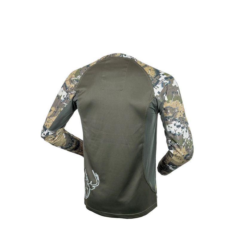 It utilizes two high-performance fabrics in a body-mapped design allowing for maximum movement and rapid heat dumping to ensure you stay dry and cool while hunting in warmer climates. It also feels amazing on the skin!