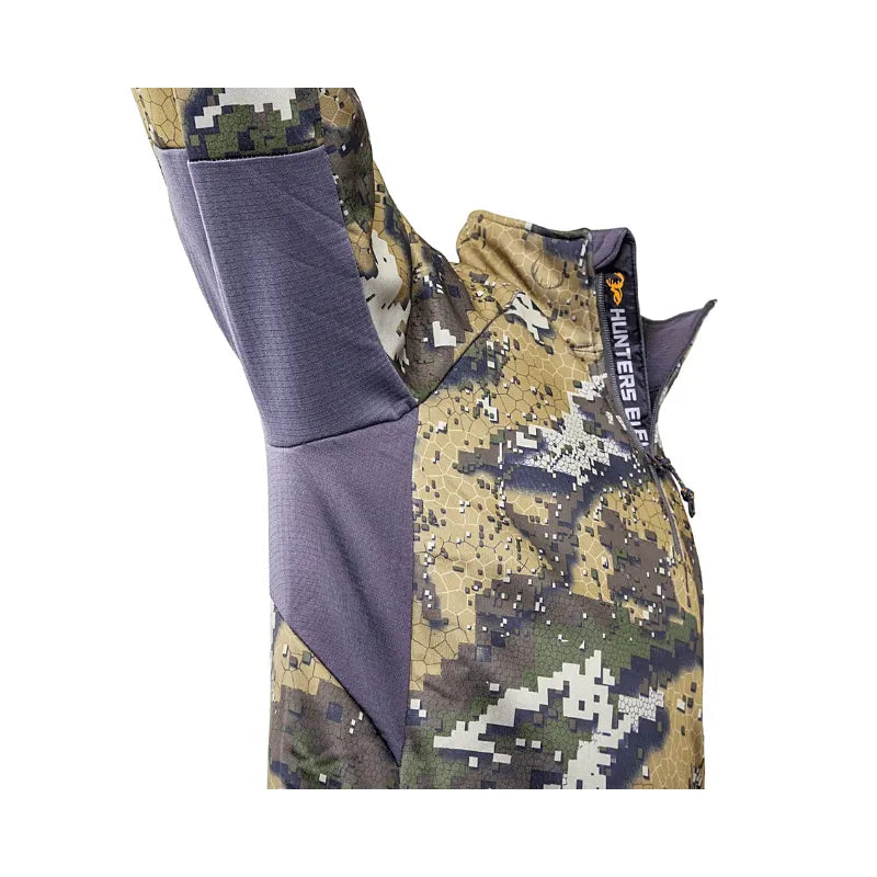 Designed as a true technical hunting mid layer. The Elite Top is one of the warmest, most balanced mid layers available today. This is THE GO-TO TOP for all conditions, all situations, all hunts. The Elite is light, warm, tough and breathes well when the heat comes on. It utilizes a 280gm hard-faced, high wicking fleece, and a 205gm GRIDstretch, high wicking, high breathability fleece. A “body mapped” design for the ultimate in warmth, wicking & breathability.