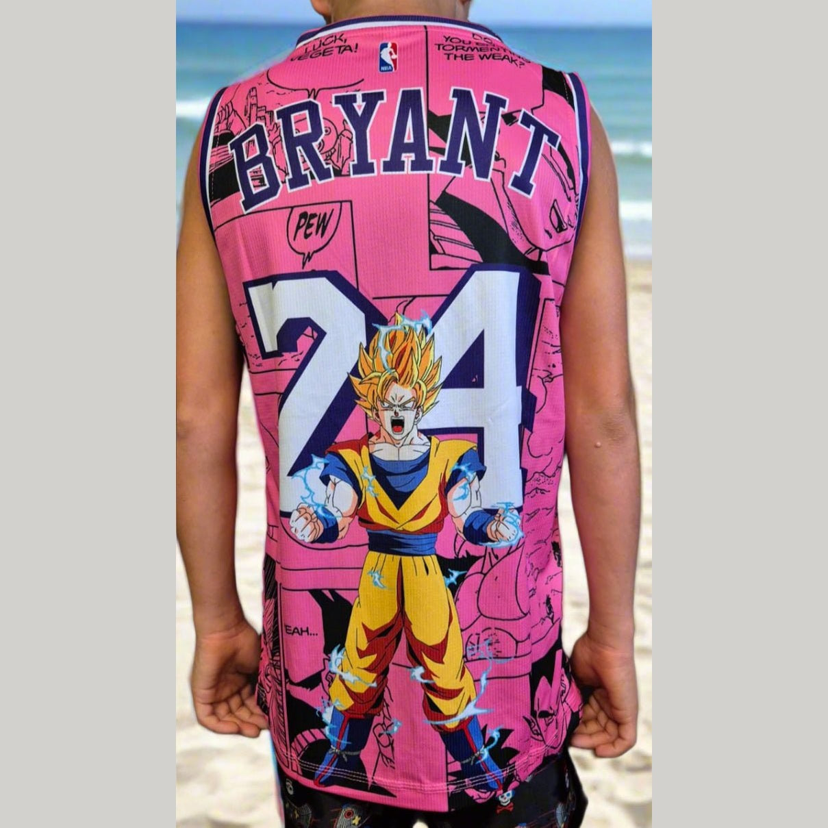 NBA LAKERS KOBE BRYANT X DRAGON BALL Z PINK CUSTOM BASKETBALL SINGLET
