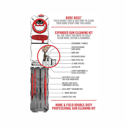 3. Compact and Portable: The Gun Boss Multi Cleaning Kit is designed with convenience in mind. The compact and rugged carrying case is perfect for on-the-go cleaning, allowing you to maintain your firearm's cleanliness wherever your adventures take you. Never compromise on cleanliness due to limited space or travel constraints.
