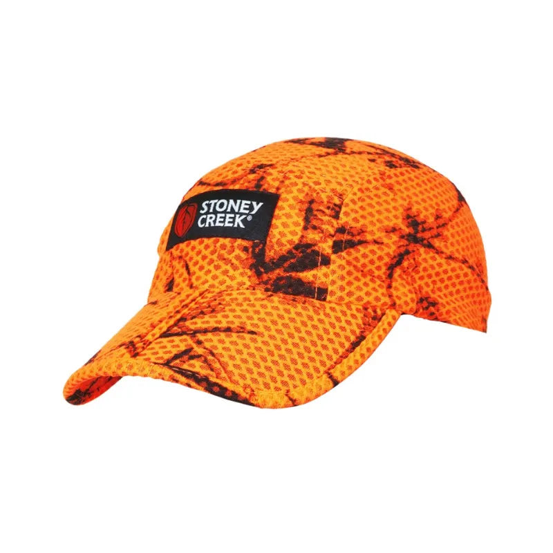 The Stoney Creek Split Peaked Airmesh Cap Blaze Orange OSO is designed for outdoor enthusiasts who need a reliable and comfortable cap for their adventures. Here are the key features: