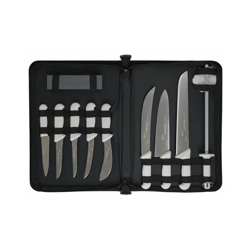 Multiple Knife Options: Includes filleting, boning, and trimming knives for versatile use.