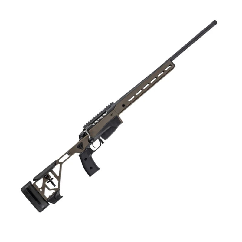 The Tikka T3x ACE Game Bronze is a premium bolt-action rifle built on the same modular chassis as the ACE Target series, optimized for hunting and precision shooting. Chambered in 7mm PRC, it features a 24.3" fluted medium contour barrel, 5/8x24 muzzle thread, and a Midnight Bronze Cerakote finish for durability and stealth.